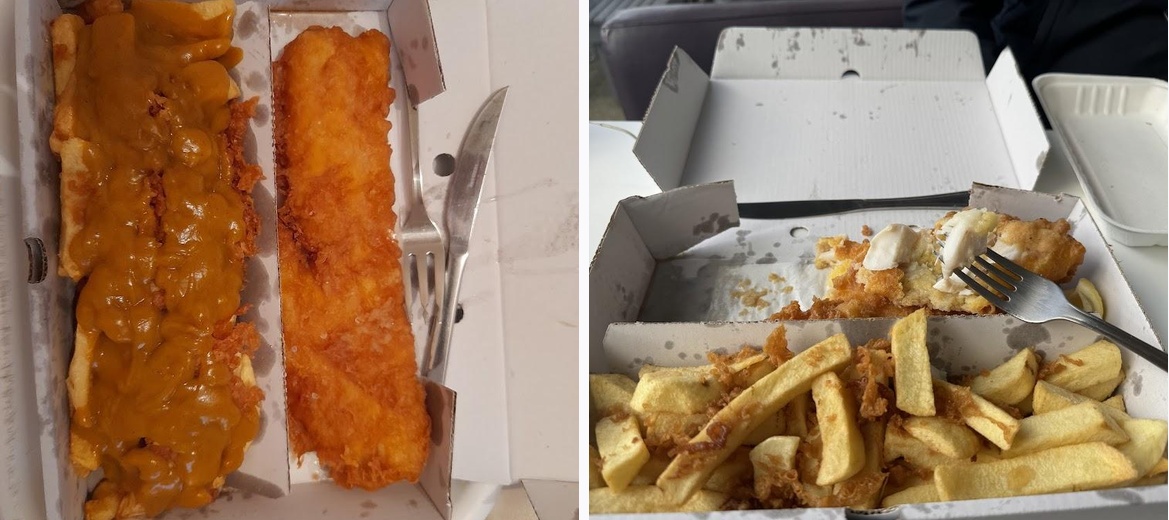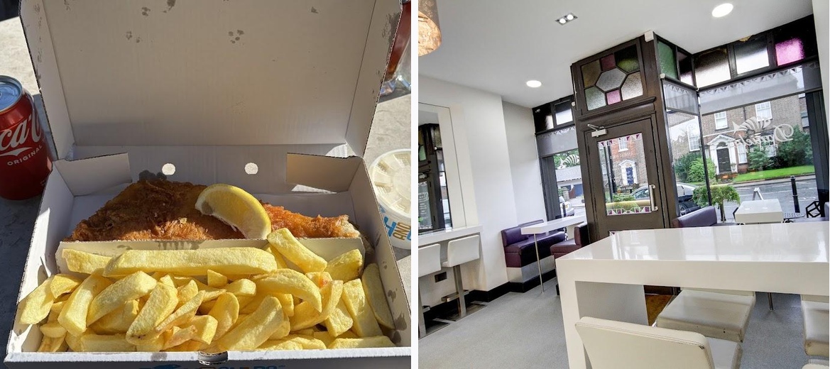 We were looking after a friend's dog. and just happened to walk past this place. With seating outside, we asked whether it would be ok to have a meal sat there. Well not only did we get the best fish and chips that we've ever had in our lives (and we're had a fair few!), but we got served with proper cutlery and a serviette, and condiments in containers that you would expect to find in a good restaurant. The food was cooked fresh, and the portions were huge! The fish was lovely and thick, the chips absolutely perfect, and the curry sauce was very different to the sludge that we've encountered in recent fish and chip experiences... There was a little wait for the food, but completely understandable, given that it was cooked to order. But the service was second to none, and we even got a check back during the meal! Absolutely outstanding, and we will most definitely return. Well done, everyone, you deserve to be so highly rated!